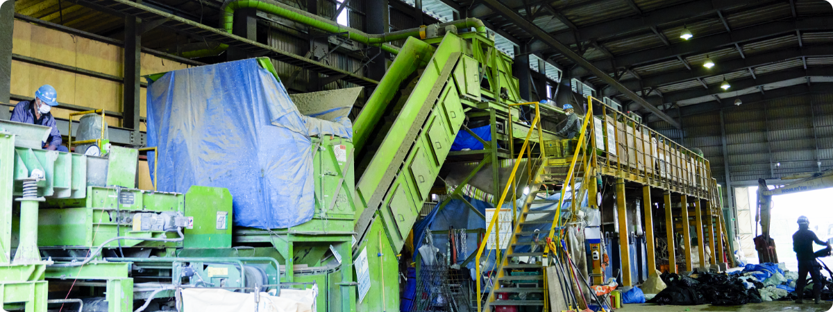 さまざまな廃棄物が混ざった状態から、種類ごとに仕分けをし、再利用できるものを抽出します。